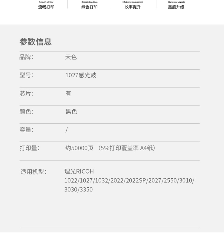 > 办公耗材 复印纸 硒鼓 > 打印耗材 > 硒鼓 > 天色 鼓组件 理光MP1027(适用于 Ricoh 1022/1027/1032/2022/2022SP/2027/2550/3010)阳光旗舰版| 产品名称 : | 天色 鼓组件 理光MP1027(适用于 Ricoh 1022/1027/1032/2022/2022SP/2027/2550/3010)阳光旗舰版 |