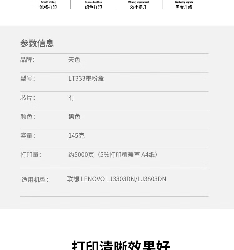 | 产品名称 : | 天色 粉盒 LT333 (适用于 Lenovo LJ3303DN LJ3803DN)阳光旗舰版 |