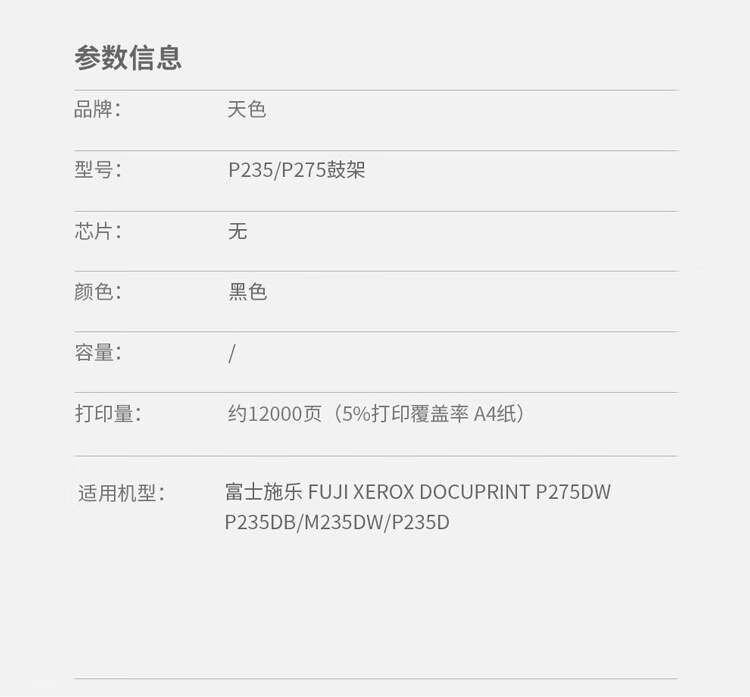 | 产品名称 : | 天色 鼓架 兼容施乐 P235/P275(适用于 Xerox CT351056 M228b/)阳光旗舰版 |
