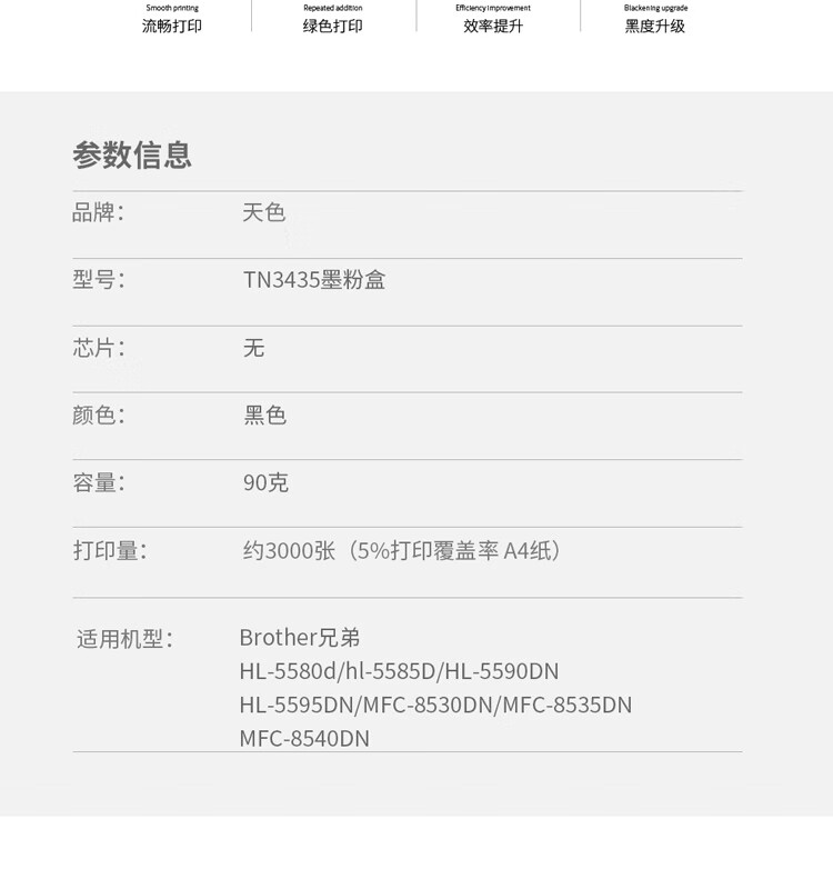 > 办公耗材 复印纸 硒鼓 > 打印耗材 > 硒鼓 > 天色 粉盒 TN3435 国内版(适用于 BrotherMFC-8535DN/8530DN/HL-5595DN/5590DN/5585D)阳光旗舰版| 产品名称 : | 天色 粉盒 TN3435 国内版(适用于 BrotherMFC-8535DN/8530DN/HL-5595DN/5590DN/5585D)阳光旗舰版 |
