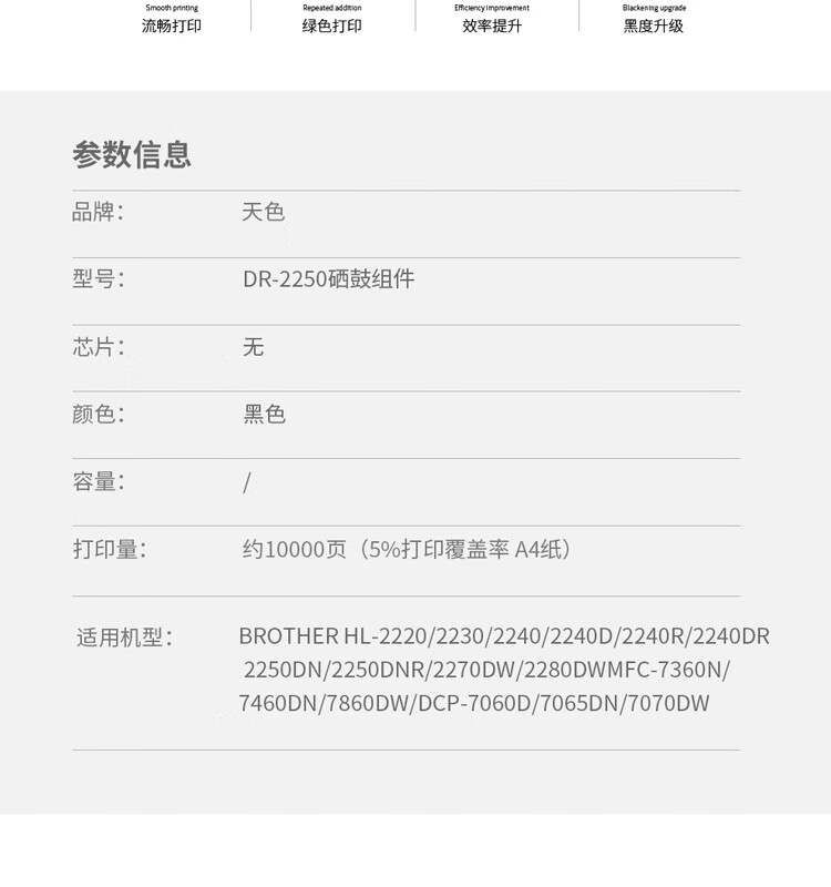 > 办公耗材 复印纸 硒鼓 > 打印耗材 > 硒鼓 > 天色 硒鼓 DR2250 (适用于 BrotherHL-2240/2250/2220/2230/2270/2280/2890/DCP-7060/)阳光旗舰版| 产品名称 : | 天色 硒鼓 DR2250 (适用于 BrotherHL-2240/2250/2220/2230/2270/2280/2890/DCP-7060/)阳光旗舰版 |
