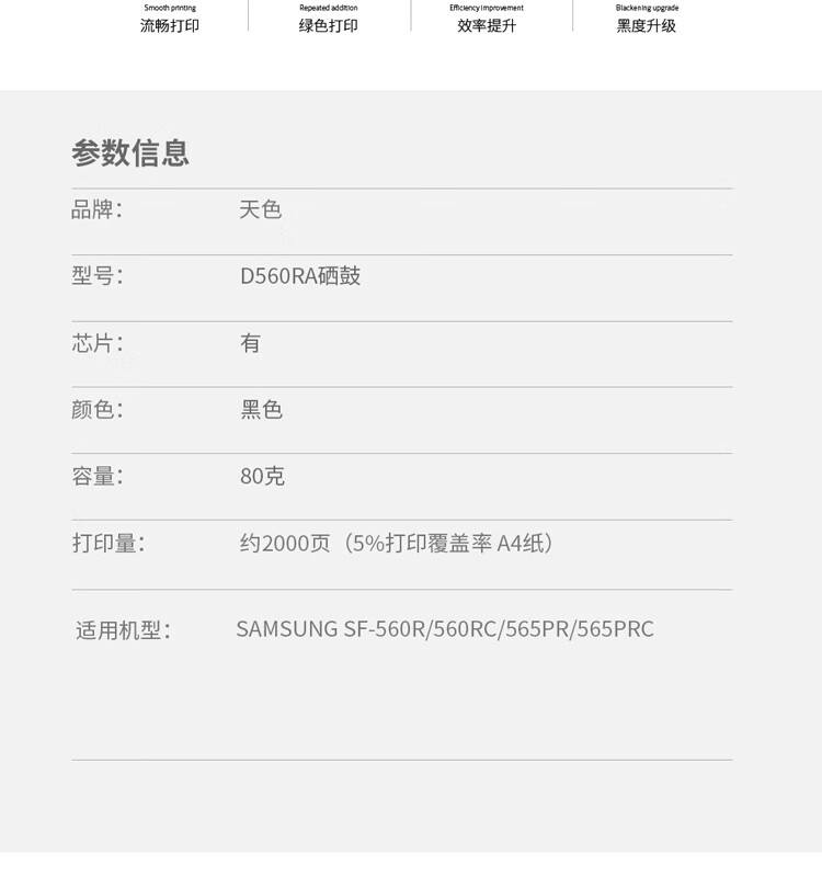 > 办公耗材 复印纸 硒鼓 > 打印耗材 > 硒鼓 > 天色 硒鼓 兼容三星 D560RA 易加版(适用于 SamsungSF-565PRC/560R/560RC/565PR)阳光旗舰版| 产品名称 : | 天色 硒鼓 兼容三星 D560RA 易加版(适用于 SamsungSF-565PRC/560R/560RC/565PR)阳光旗舰版 |