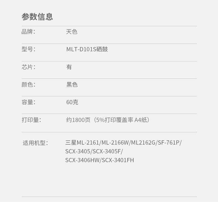 > 办公耗材 复印纸 硒鼓 > 打印耗材 > 硒鼓 > 天色 硒鼓 D101S 中文易加版(适用于 SamsungXpressML-2161/ML-2166W/2162G/SF-761PSCX-3405)阳光旗舰版| 产品名称 : | 天色 硒鼓 D101S 中文易加版(适用于 SamsungXpressML-2161/ML-2166W/2162G/SF-761PSCX-3405)阳光旗舰版 |