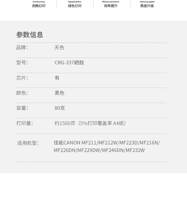 | 产品名称 : | 天色 硒鼓 CRG337 (适用于 CanonIR2318L/2320J/2320L/2320N/)阳光旗舰版 |