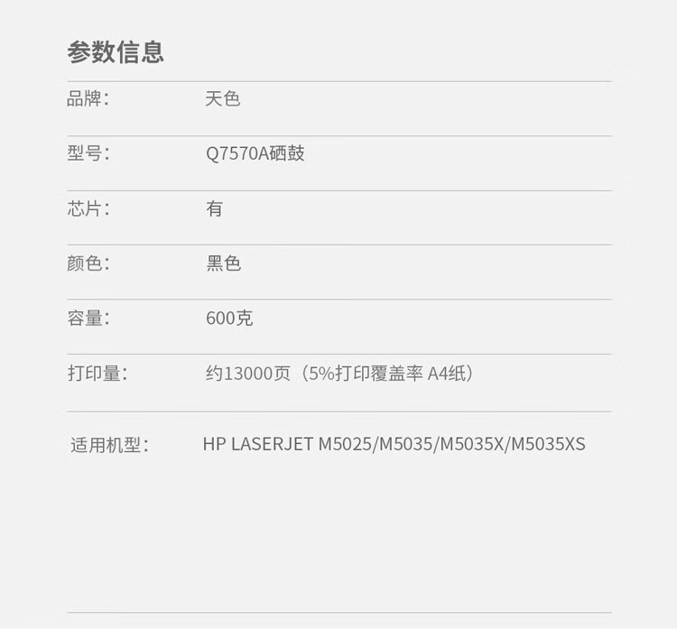 | 产品名称 : | 天色 硒鼓 Q7570A (适用于 HPLaserJetM5025/M5035/M5035x/M5035xs)阳光旗舰版 |