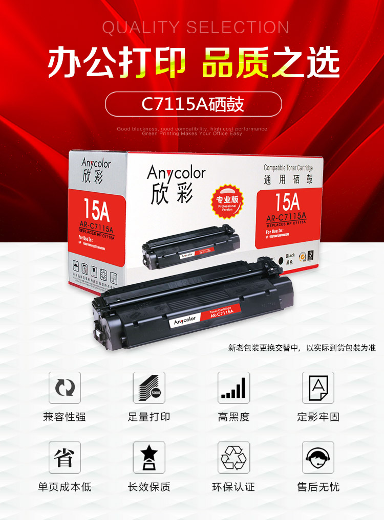 > 办公耗材 复印纸 硒鼓 > 打印耗材 > 硒鼓 > 欣彩(Anycolor)AR-C7115A硒鼓(专业版)15A 适用惠普LaserJet 1000 1005 1200系列 3300 3330 3380MFP| 产品名称 : | 欣彩(Anycolor)AR-C7115A硒鼓(专业版)15A 适用惠普LaserJet 1000 1005 1200系列 3300 3330 3380MFP |