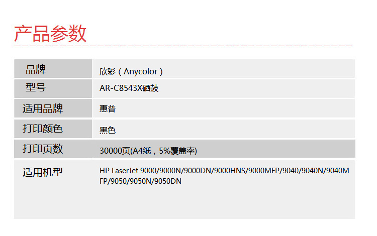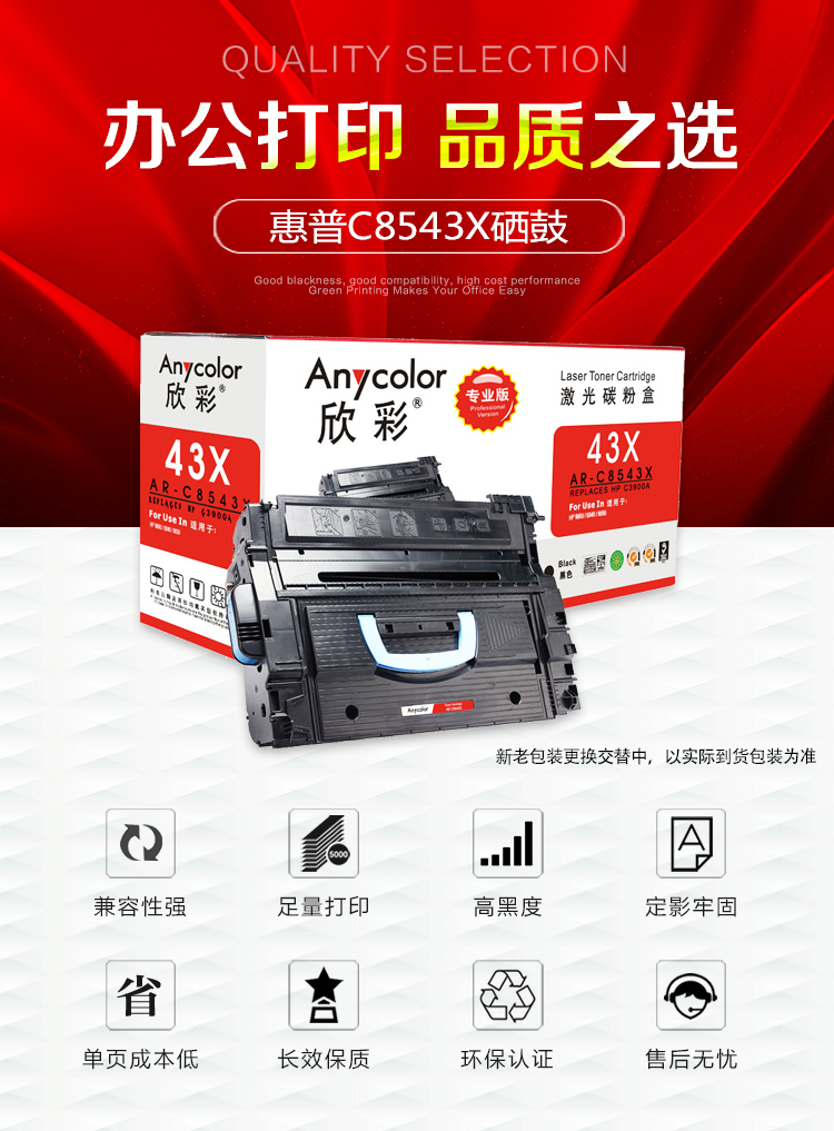> 办公耗材 复印纸 硒鼓 > 打印耗材 > 硒鼓 > 欣彩(Anycolor)C8543X硒鼓(专业版)AR-C8543X 适用惠普9000/9000N 9000DN 9040 9040N 9050 C8543X| 产品名称 : | 欣彩(Anycolor)C8543X硒鼓(专业版)AR-C8543X 适用惠普9000/9000N 9000DN 9040 9040N 9050 C8543X |