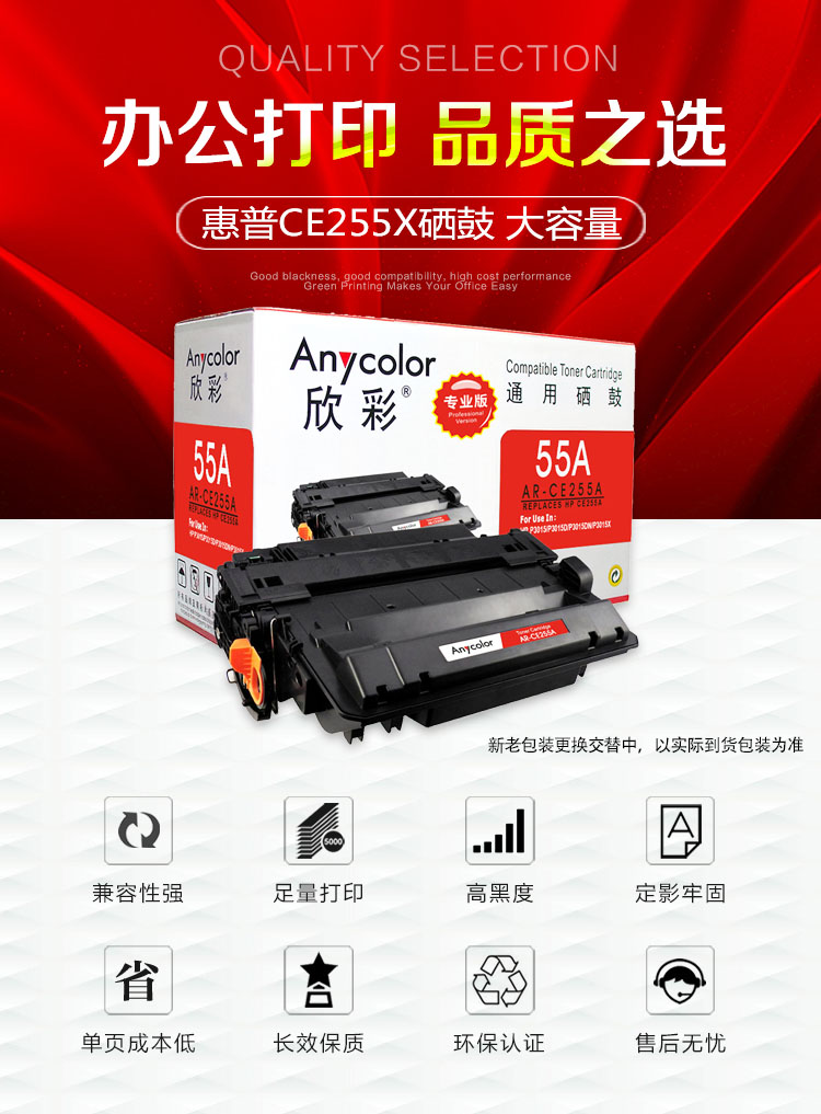 > 办公耗材 复印纸 硒鼓 > 打印耗材 > 硒鼓 > 欣彩(Anycolor)CE255X硒鼓(专业版) AR-CE255X 55X适用惠普HP P3015 P3015D P3015DN P3011 M521 M525| 产品名称 : | 欣彩(Anycolor)CE255X硒鼓(专业版) AR-CE255X 55X适用惠普HP P3015 P3015D P3015DN P3011 M521 M525 |
