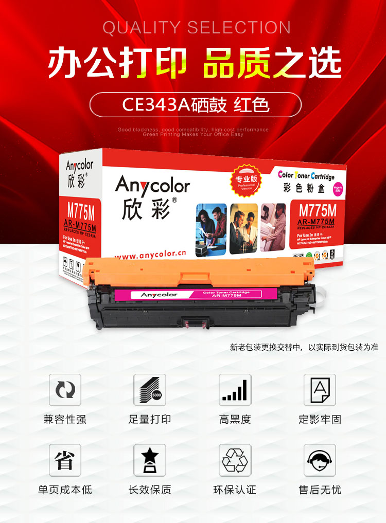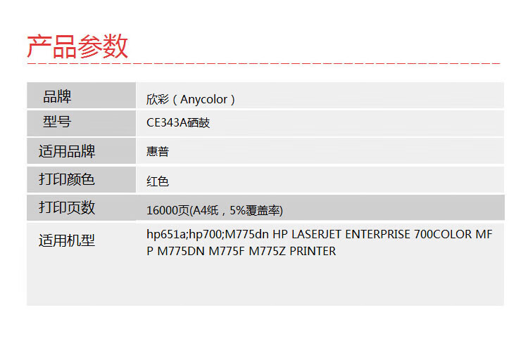 产品名称 : 欣彩(Anycolor)CE343A硒鼓(专业版)651A红色 AR-M775M 适用惠普HP M775 M775dn M775f M775z HP651A