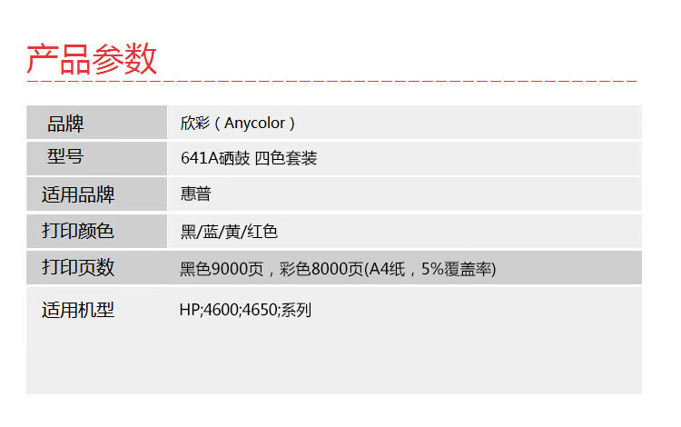 | 产品名称 : | 欣彩 C9720A/641A硒鼓套装 黑/蓝/红/黄四色 适用惠普HP 4600 4650系列 打印机 |