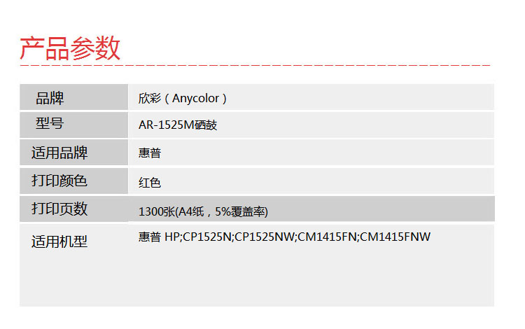 > 办公耗材 复印纸 硒鼓 > 打印耗材 > 硒鼓 > 欣彩(Anycolor)AR-1525M 大众版 CE323A 红色硒鼓 128A 适用惠普HP CM1415fn fnw CP1525n| 产品名称 : | 欣彩(Anycolor)AR-1525M 大众版 CE323A 红色硒鼓 128A 适用惠普HP CM1415fn fnw CP1525n |