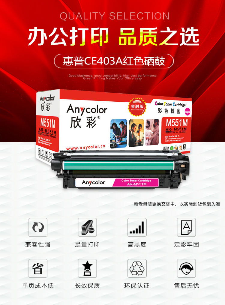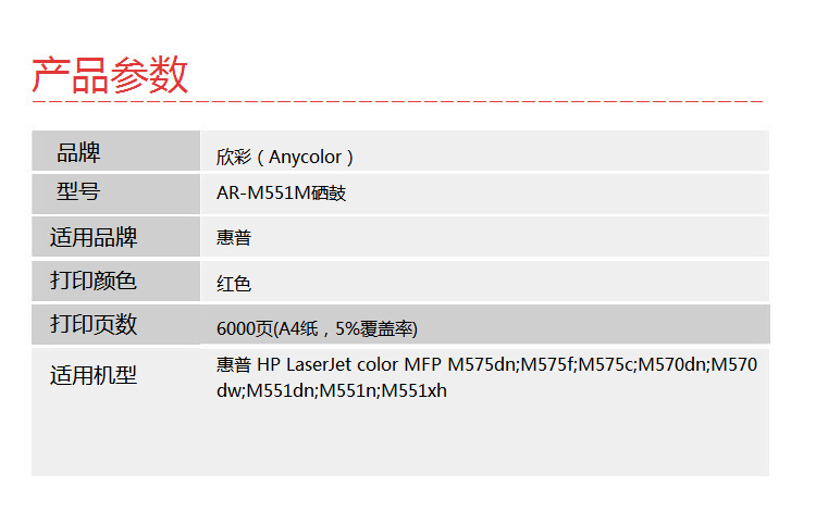 > 办公耗材 复印纸 硒鼓 > 打印耗材 > 硒鼓 > 欣彩(Anycolor)CE403A硒鼓 金融版 507A红色AR-M551M适用惠普HPM551n M575dn M575fw M551n M551dn| 产品名称 : | 欣彩(Anycolor)CE403A硒鼓 金融版 507A红色AR-M551M适用惠普HPM551n M575dn M575fw M551n M551dn |