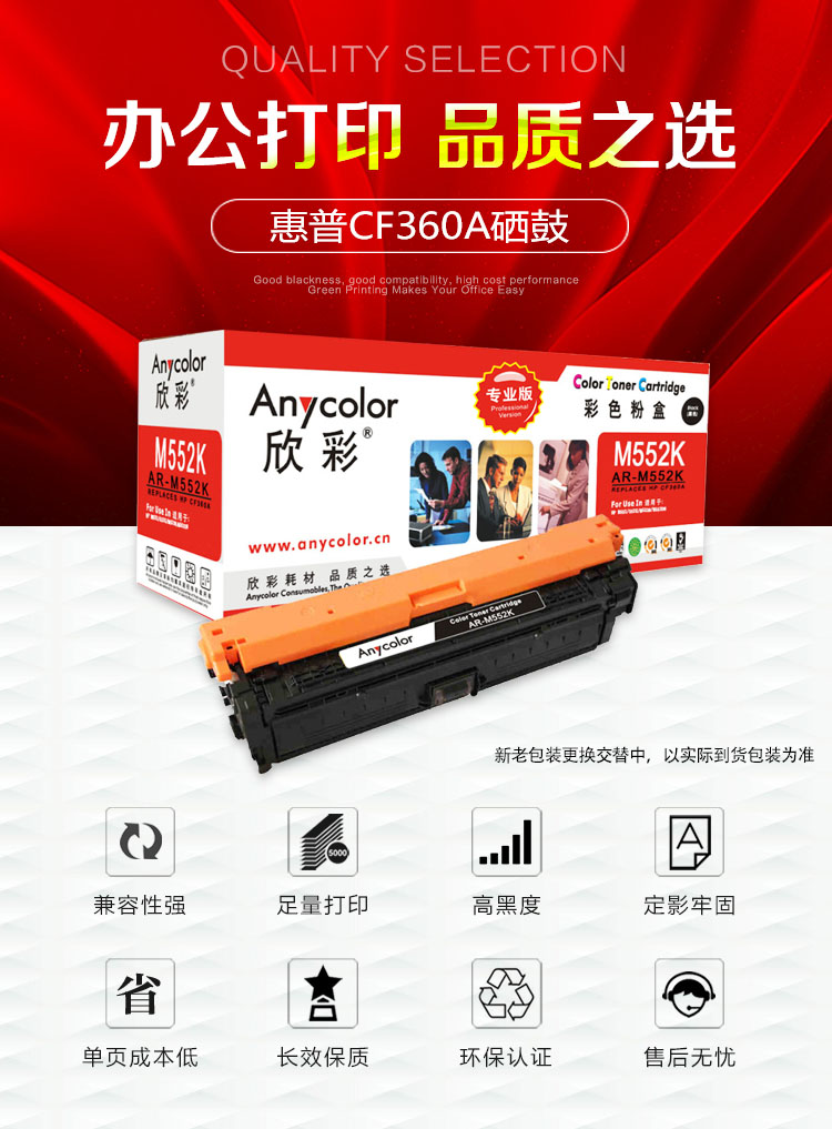 > 办公耗材 复印纸 硒鼓 > 打印耗材 > 硒鼓 > 欣彩(Anycolor)CF360A硒鼓(专业版)508A黑色 AR-M552K适用HP惠普M552dn M553x M553n M553dn M577dn| 产品名称 : | 欣彩(Anycolor)CF360A硒鼓(专业版)508A黑色 AR-M552K适用HP惠普M552dn M553x M553n M553dn M577dn |