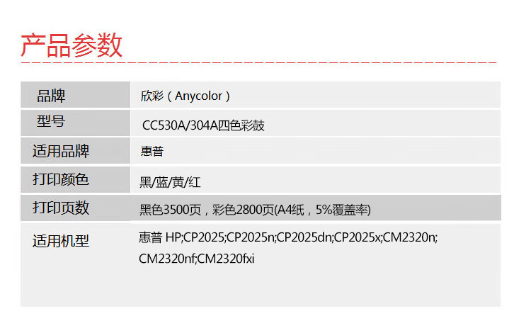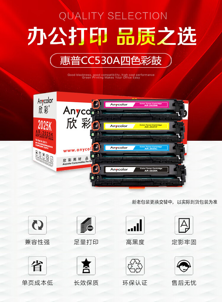 > 办公耗材 复印纸 硒鼓 > 打印耗材 > 硒鼓 > 欣彩 CC530A/304A四色彩鼓 大众版 AR-2025K/C/Y/M硒鼓 531 532 533 适用惠普HP Color LaserJet CP2025 2320| 产品名称 : | 欣彩 CC530A/304A四色彩鼓 大众版 AR-2025K/C/Y/M硒鼓 531 532 533 适用惠普HP Color LaserJet CP2025 2320 |