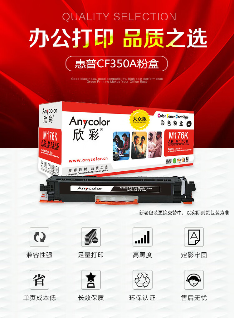 | 产品名称 : | 欣彩 CF350A粉盒 大众版 AR-M176K黑色 130A 适用惠普HP LaserJet M176n M177fw |