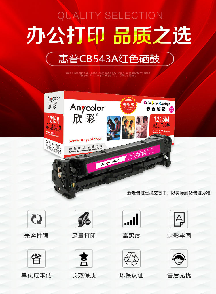 > 办公耗材 复印纸 硒鼓 > 打印耗材 > 硒鼓 > 欣彩(Anycolor)AR-1215M 专业版 CB543A红色硒鼓 125A 适用惠普HP CP1215 1515n 1518ni CM1312 nfi| 产品名称 : | 欣彩(Anycolor)AR-1215M 专业版 CB543A红色硒鼓 125A 适用惠普HP CP1215 1515n 1518ni CM1312 nfi |
