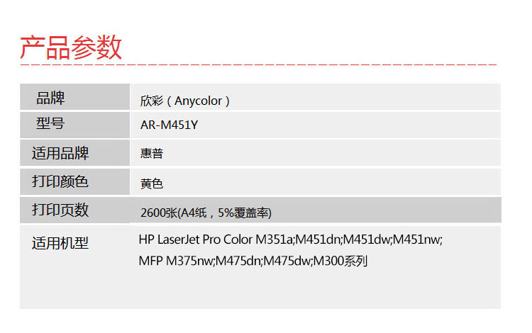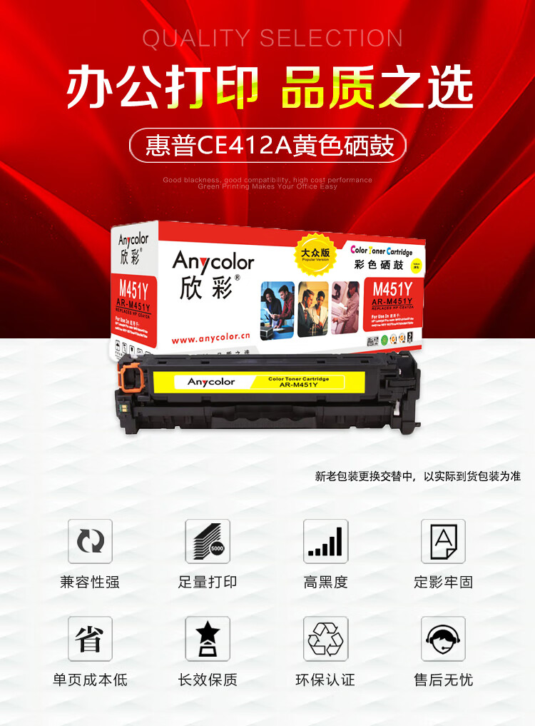 > 办公耗材 复印纸 硒鼓 > 打印耗材 > 硒鼓 > 欣彩(Anycolor)AR-M451Y 大众版 CE412A 黄色硒鼓 305A 适用惠普HP M351a M451dn nw M375nw M475dn| 产品名称 : | 欣彩(Anycolor)AR-M451Y 大众版 CE412A 黄色硒鼓 305A 适用惠普HP M351a M451dn nw M375nw M475dn |