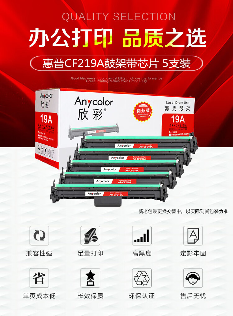 > 办公耗材 复印纸 硒鼓 > 打印耗材 > 硒鼓 > 欣彩(Anycolor)CF219A鼓架(商务版)AR-CF219A硒鼓 5支装含芯片 适用惠普HP M132snw M128fp M126nw M104a| 产品名称 : | 欣彩(Anycolor)CF219A鼓架(商务版)AR-CF219A硒鼓 5支装含芯片 适用惠普HP M132snw M128fp M126nw M104a |