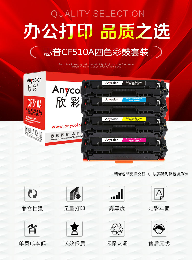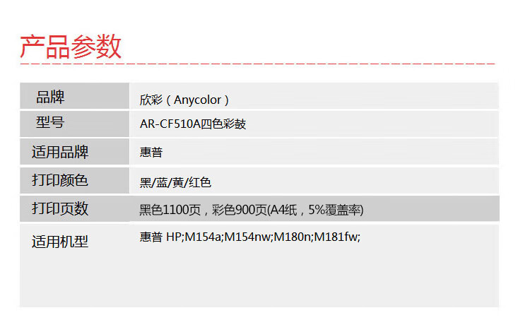 > 办公耗材 复印纸 硒鼓 > 打印耗材 > 硒鼓 > 欣彩(Anycolor)CF510A/204四色彩鼓(商务版)511 512 513硒鼓 适用惠普HP M154a M154nw M180N M180nw| 产品名称 : | 欣彩(Anycolor)CF510A/204四色彩鼓(商务版)511 512 513硒鼓 适用惠普HP M154a M154nw M180N M180nw |