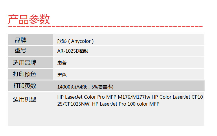 > 办公耗材 复印纸 硒鼓 > 打印耗材 > 硒鼓 > 欣彩(Anycolor)CE314A硒鼓 大众版 AR-1025D鼓架126A适用惠普HP CP1025 M175A M175nw M275nw成像鼓| 产品名称 : | 欣彩(Anycolor)CE314A硒鼓 大众版 AR-1025D鼓架126A适用惠普HP CP1025 M175A M175nw M275nw成像鼓 |