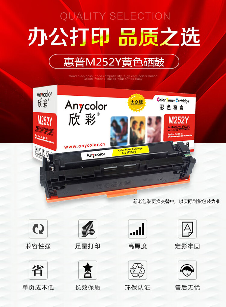 > 办公耗材 复印纸 硒鼓 > 打印耗材 > 硒鼓 > 欣彩 CF402A 大众版 AR-M252Y 201A 1.4K黄色硒鼓 适用惠普HP Color LaserJet Pro M252N M252DW| 产品名称 : | 欣彩 CF402A 大众版 AR-M252Y 201A 1.4K黄色硒鼓 适用惠普HP Color LaserJet Pro M252N M252DW |