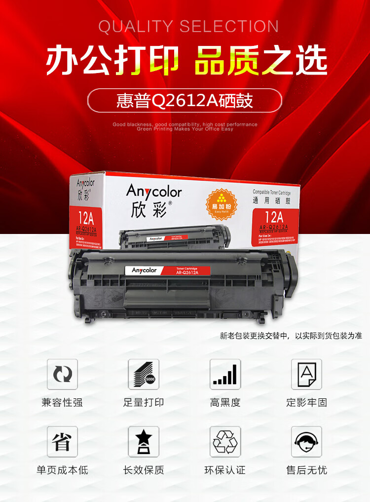 > 办公耗材 复印纸 硒鼓 > 打印耗材 > 硒鼓 > 欣彩(Anycolor)Q2612A硒鼓 易加粉 AR-Q2612A hp12A 适用惠普HP1010 1018 1020plus 1022 3050 M1005| 产品名称 : | 欣彩(Anycolor)Q2612A硒鼓 易加粉 AR-Q2612A hp12A 适用惠普HP1010 1018 1020plus 1022 3050 M1005 |