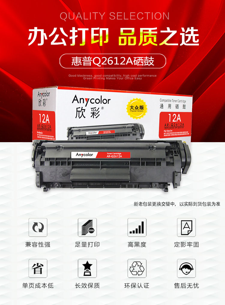 > 办公耗材 复印纸 硒鼓 > 打印耗材 > 硒鼓 > 欣彩(Anycolor)Q2612A硒鼓 大众版 AR-Q2612AS hp12A 适用惠普HP1010 1018 1020plus 1022 3050 M1005| 产品名称 : | 欣彩(Anycolor)Q2612A硒鼓 大众版 AR-Q2612AS hp12A 适用惠普HP1010 1018 1020plus 1022 3050 M1005 |