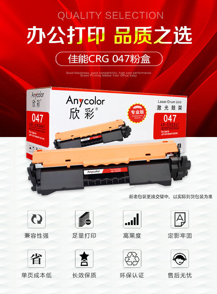 > 办公耗材 复印纸 硒鼓 > 打印耗材 > 硒鼓 > 欣彩(Anycolor)CRG 047粉盒(专业版)AR-CRG047 适用佳能LBP 112 113W MF112 113W打印机| 产品名称 : | 欣彩(Anycolor)CRG 047粉盒(专业版)AR-CRG047 适用佳能LBP 112 113W MF112 113W打印机 |