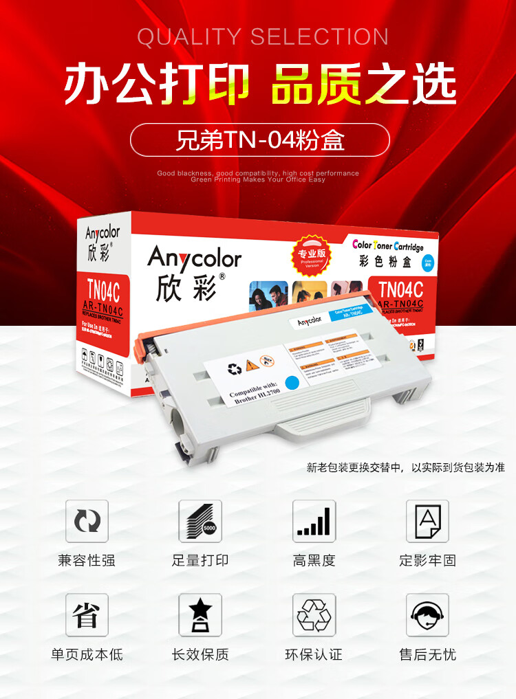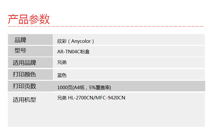产品名称 : 欣彩(Anycolor)TN-04粉盒(专业版)AR-TN04C 蓝色粉仓 适用兄弟 HL-2700CN MFC-9420CN 打印机