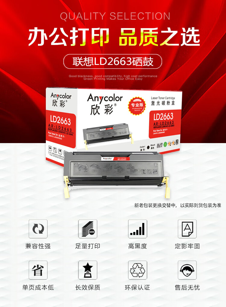 | 产品名称 : | 欣彩 LD2663硒鼓 专业版 AR-LD2663 10K适用联想lenovo LJ6300D 6350DN 打印机 |