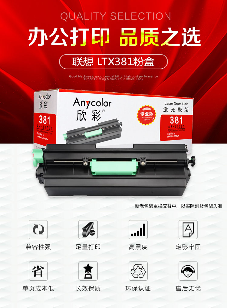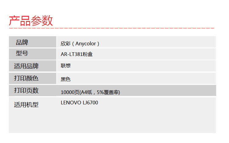| 产品名称 : | 欣彩(Anycolor)LTX381粉盒(专业版)AR-LT381黑色墨粉筒 适用联想LENOVO LJ6700硒鼓 |