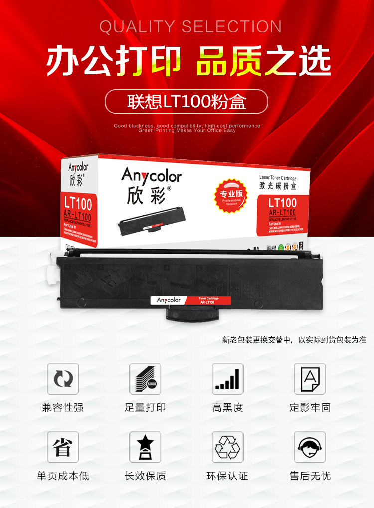 | 产品名称 : | 欣彩 LT100粉盒 专业版 AR-LT100 1.5K适用联想LENOVO L100 M100 打印机耗材 |