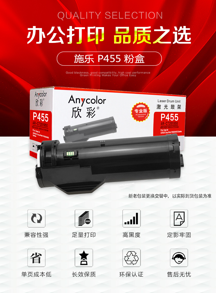 > 办公耗材 复印纸 硒鼓 > 打印耗材 > 硒鼓 > 欣彩(Anycolor)P455粉盒(专业版)AR-P455 适用富士施乐DocuPrint P455 M455 Series CT201950| 产品名称 : | 欣彩(Anycolor)P455粉盒(专业版)AR-P455 适用富士施乐DocuPrint P455 M455 Series CT201950 |