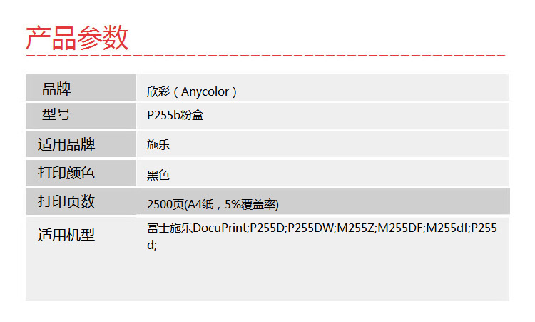 > 办公耗材 复印纸 硒鼓 > 打印耗材 > 硒鼓 > 欣彩(Anycolor)P255b墨粉盒(专业版)AR-P255 CT201918适用施乐Xerox P255D P255DW M255Z M255DF 粉筒| 产品名称 : | 欣彩(Anycolor)P255b墨粉盒(专业版)AR-P255 CT201918适用施乐Xerox P255D P255DW M255Z M255DF 粉筒 |