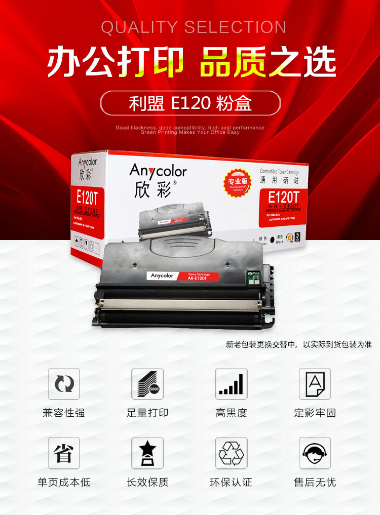 > 办公耗材 复印纸 硒鼓 > 打印耗材 > 硒鼓 > 欣彩(Anycolor)E120粉盒(专业版)AR-E120T 适用利盟LEXMARK E120 E120N 12017SR 打印机| 产品名称 : | 欣彩(Anycolor)E120粉盒(专业版)AR-E120T 适用利盟LEXMARK E120 E120N 12017SR 打印机 |