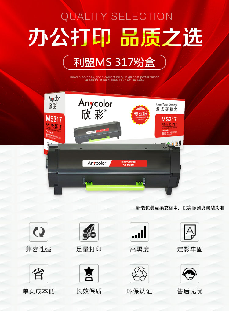 > 办公耗材 复印纸 硒鼓 > 打印耗材 > 硒鼓 > 欣彩(Anycolor)51B3000碳粉 专业版 AR-MS317LT墨粉盒 5K 适用利盟LEXMARK MS317 417 517 617 MX317 417| 产品名称 : | 欣彩(Anycolor)51B3000碳粉 专业版 AR-MS317LT墨粉盒 5K 适用利盟LEXMARK MS317 417 517 617 MX317 417 |