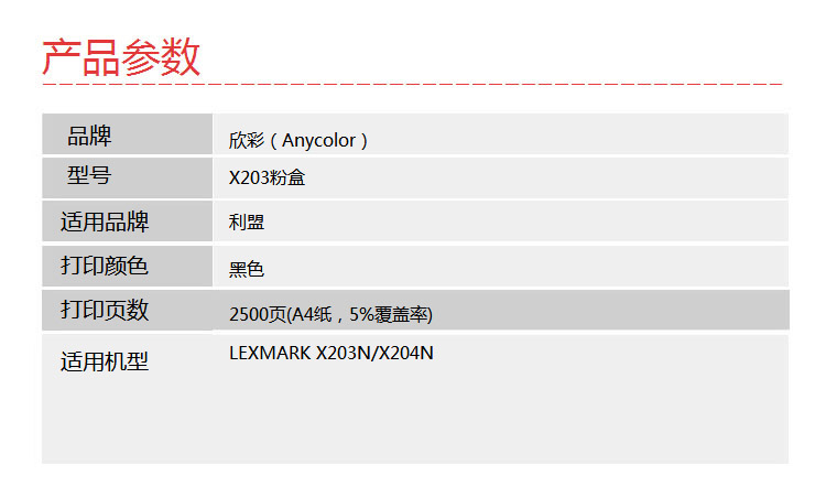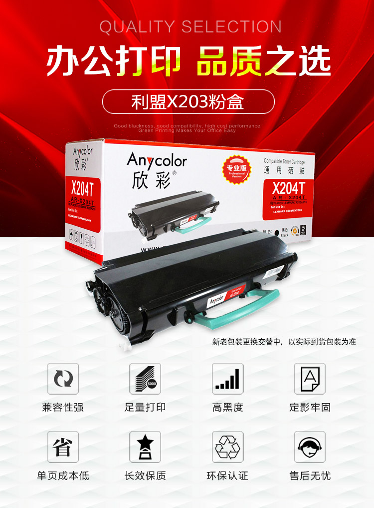 > 办公耗材 复印纸 硒鼓 > 打印耗材 > 硒鼓 > 欣彩(Anycolor)X203粉盒(专业版)AR-X204T 适用利盟X203 A21G,LEXMARK X203N X204N| 产品名称 : | 欣彩(Anycolor)X203粉盒(专业版)AR-X204T 适用利盟X203 A21G,LEXMARK X203N X204N |