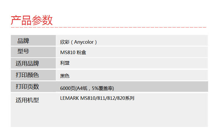> 办公耗材 复印纸 硒鼓 > 打印耗材 > 硒鼓 > 欣彩(Anycolor)MS810粉盒(专业版)AR-MS810T 6K 适用利盟LEMARK MS810 811 812 820系列 打印机| 产品名称 : | 欣彩(Anycolor)MS810粉盒(专业版)AR-MS810T 6K 适用利盟LEMARK MS810 811 812 820系列 打印机 |