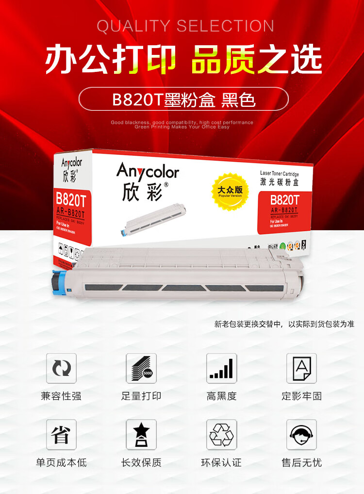 | 产品名称 : | 欣彩 B820T碳粉盒 大众版 AR-B820T 6K黑色墨粉盒 适用OKI B820dn B840dn 打印机 |
