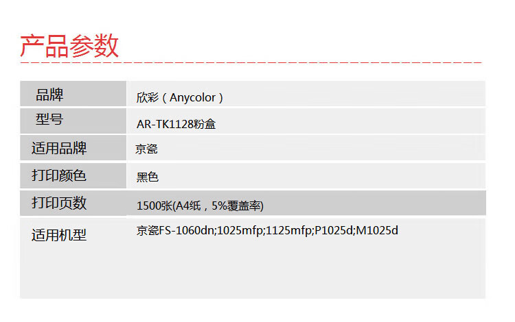 > 办公耗材 复印纸 硒鼓 > 打印耗材 > 硒鼓 > 欣彩(Anycolor)TK-1128墨粉盒 专业版 AR-TK1128 适用京瓷 FS-1060dn 1025mfp 1125mfp P1025d M1025d PN| 产品名称 : | 欣彩(Anycolor)TK-1128墨粉盒 专业版 AR-TK1128 适用京瓷 FS-1060dn 1025mfp 1125mfp P1025d M1025d PN |