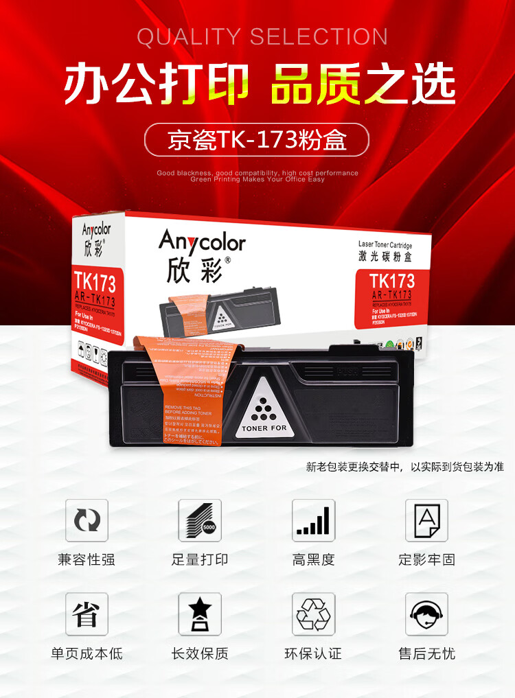 > 办公耗材 复印纸 硒鼓 > 打印耗材 > 硒鼓 > 欣彩(Anycolor)TK-173粉盒(专业版)AR-TK173墨粉盒 适用京瓷 FS-1320d P2135d P2135dn| 产品名称 : | 欣彩(Anycolor)TK-173粉盒(专业版)AR-TK173墨粉盒 适用京瓷 FS-1320d P2135d P2135dn |