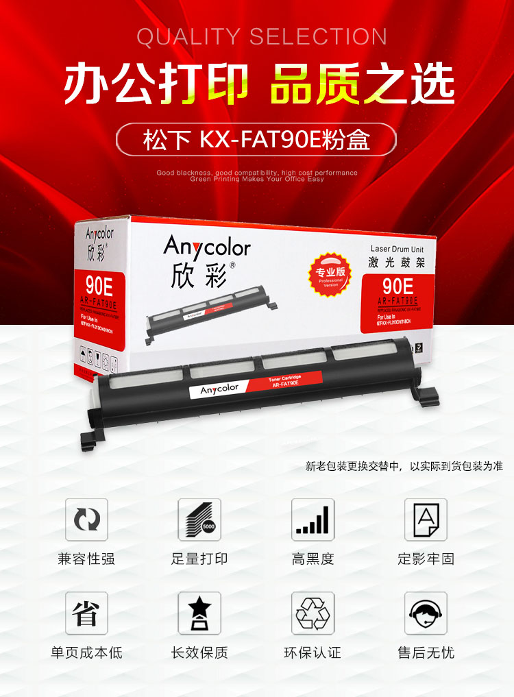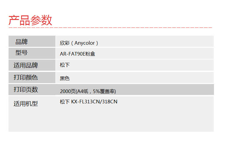 | 产品名称 : | 欣彩(Anycolor)KX-FAT90E粉盒(专业版)AR-90E墨粉筒 |