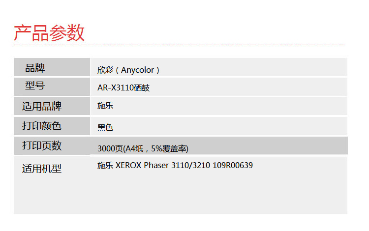 > 办公耗材 复印纸 硒鼓 > 打印耗材 > 硒鼓 > 欣彩(Anycolor)3110硒鼓(专业版)AR-X3110 适用施乐XEROX Phaser 3110 3210 109R00639 打印机| 产品名称 : | 欣彩(Anycolor)3110硒鼓(专业版)AR-X3110 适用施乐XEROX Phaser 3110 3210 109R00639 打印机 |