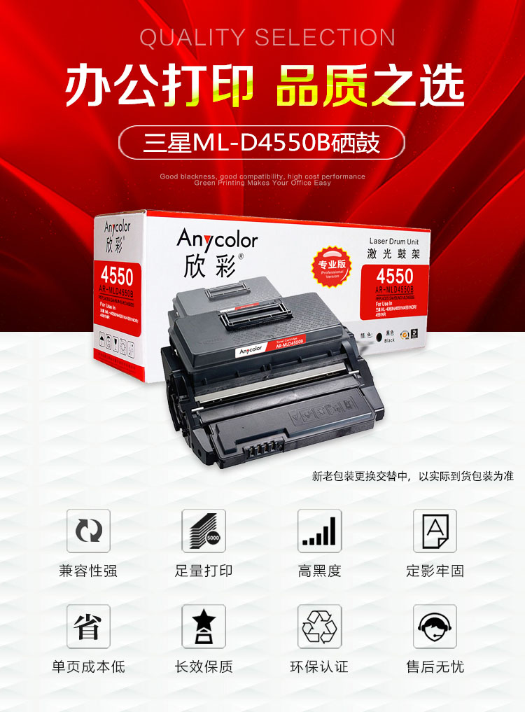 > 办公耗材 复印纸 硒鼓 > 打印耗材 > 硒鼓 > 欣彩(Anycolor)ML-D4550B硒鼓(专业版) AR-MLD4550B 20K 适用三星 ML-4050N 4551N 4551NDR 4551NR| 产品名称 : | 欣彩(Anycolor)ML-D4550B硒鼓(专业版) AR-MLD4550B 20K 适用三星 ML-4050N 4551N 4551NDR 4551NR |