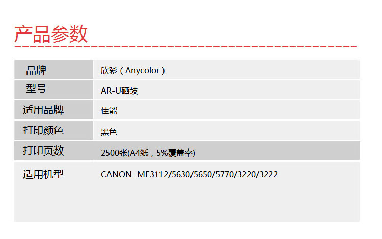 > 办公耗材 复印纸 硒鼓 > 打印耗材 > 硒鼓 > 欣彩(Anycolor)U鼓(专业版)CRG-U AR-U硒鼓 适用佳能CANON MF3112 5630 5650 5770 3220 3222打印机| 产品名称 : | 欣彩(Anycolor)U鼓(专业版)CRG-U AR-U硒鼓 适用佳能CANON MF3112 5630 5650 5770 3220 3222打印机 |