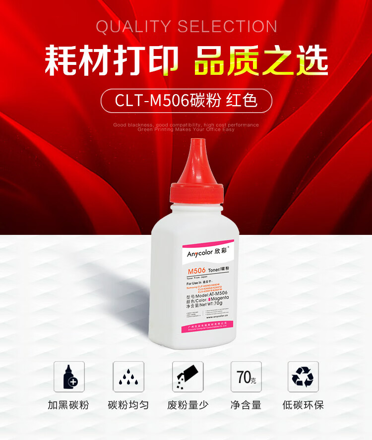> 办公耗材 复印纸 硒鼓 > 打印耗材 > 硒鼓 > 欣彩(Anycolor)CLT-M506碳粉 AT-M506红色 70g彩色墨粉 适用三星CLP-680ND 680DW CLX-6260ND 6260FD硒鼓| 产品名称 : | 欣彩(Anycolor)CLT-M506碳粉 AT-M506红色 70g彩色墨粉 适用三星CLP-680ND 680DW CLX-6260ND 6260FD硒鼓 |