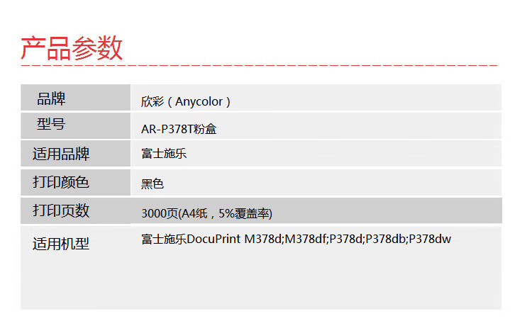 > 办公耗材 复印纸 硒鼓 > 打印耗材 > 硒鼓 > 欣彩 P378d/TN850粉盒 金融版 AR-P378T 适用施乐DocuPrint M378d M378df P378d P378db P378dw CT203110| 产品名称 : | 欣彩 P378d/TN850粉盒 金融版 AR-P378T 适用施乐DocuPrint M378d M378df P378d P378db P378dw CT203110 |