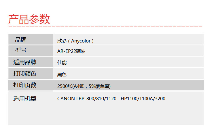 > 办公耗材 复印纸 硒鼓 > 打印耗材 > 硒鼓 > 欣彩(Anycolor)EP-22硒鼓(专业版)AR-EP22适用佳能CANON LBP-800 810 1120 HP1100 1100A 3200打印机| 产品名称 : | 欣彩(Anycolor)EP-22硒鼓(专业版)AR-EP22适用佳能CANON LBP-800 810 1120 HP1100 1100A 3200打印机 |