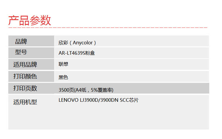 > 办公耗材 复印纸 硒鼓 > 打印耗材 > 硒鼓 > 欣彩(Anycolor)LT4639粉盒(专业版)SCC芯片 AR-LT4639S黑色墨粉筒 适用联想 LJ3900D 3900DN硒鼓| 产品名称 : | 欣彩(Anycolor)LT4639粉盒(专业版)SCC芯片 AR-LT4639S黑色墨粉筒 适用联想 LJ3900D 3900DN硒鼓 |