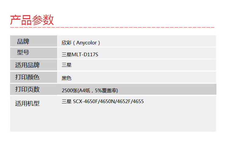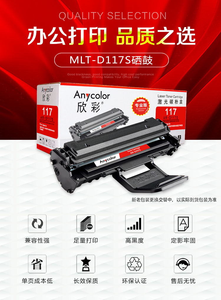 > 办公耗材 复印纸 硒鼓 > 打印耗材 > 硒鼓 > 欣彩(Anycolor)MLT-D117S硒鼓(专业版)AR-D117S 适用三星 SCX-4650F 4650N 4652F 4655 打印机| 产品名称 : | 欣彩(Anycolor)MLT-D117S硒鼓(专业版)AR-D117S 适用三星 SCX-4650F 4650N 4652F 4655 打印机 |